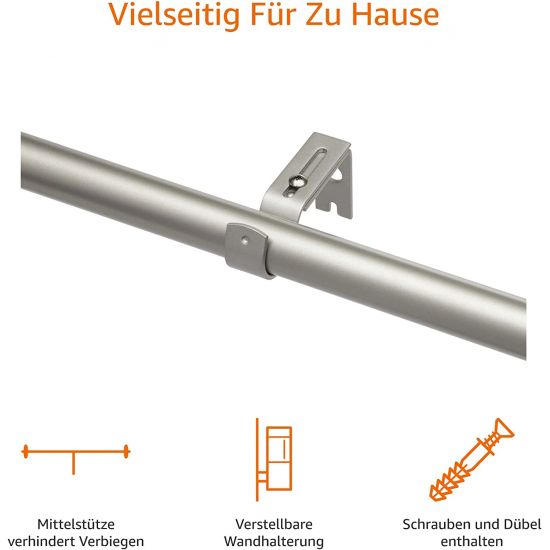 - Wandabstand einstellbar:Die mitgelieferte Wandhalterung mit verstellbarem Wandabstand sorgt für optimale Aufhängeergebnisse der Vorhangstange