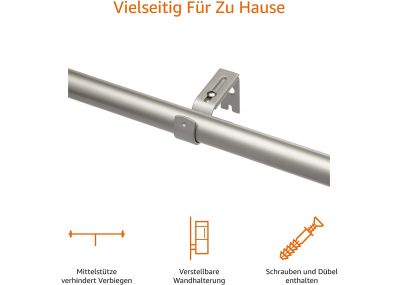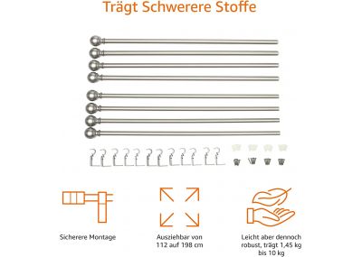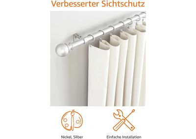 2x Amazon Basics Gardinenstange mit Rundem Endstück-Ausziehbar, 91 to 182cm, für Schlafzimmer, Esszimmer, Wohnzimmer oder Küche, Nickel