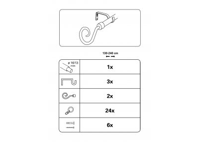 Gardinenstangen Set Hook, ausziehbar, 1-läufig, Ø 16/13 mm, schwarz 130 - 240 cm