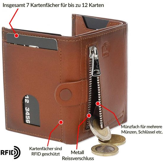 INNOVATIV Kleine Slim Wallet aus Leder, aber dennoch Platz für alles nötige (Scheine, Kleingeld und 12 Karten)